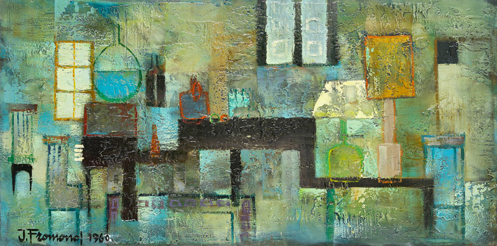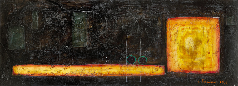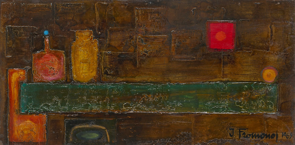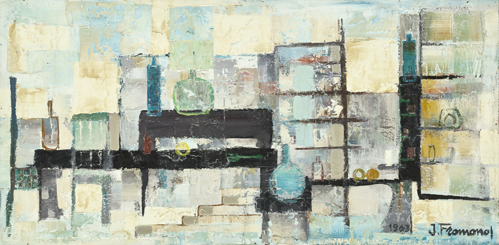 Serie "Still Life" - Ref : NM14 Abstrait / Abstract ca. 1963 54 x 32 cm - 21,3 x 12,6 inches Oil on board