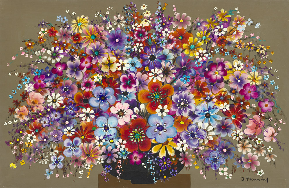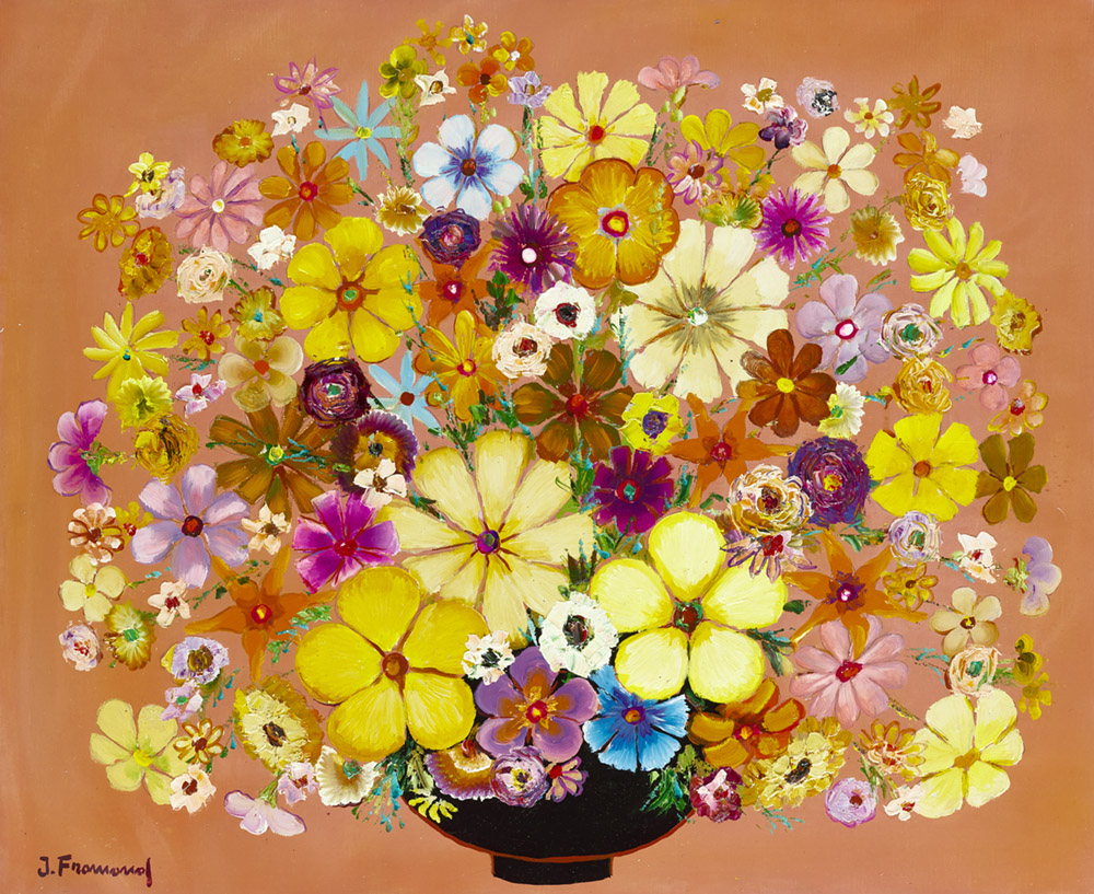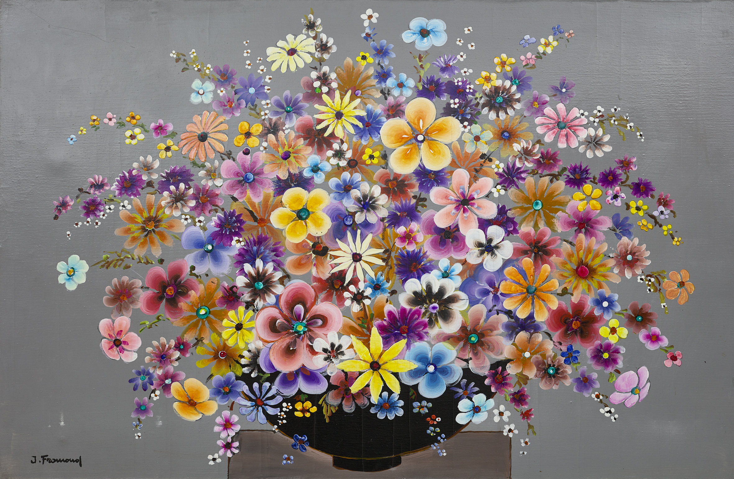 Serie "Flowers" - Ref : F42 Fleurs France / Flowers France ca. 1990 60c x 120 cm - 23,6 x 47,2 inches Oil on board