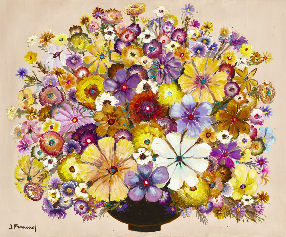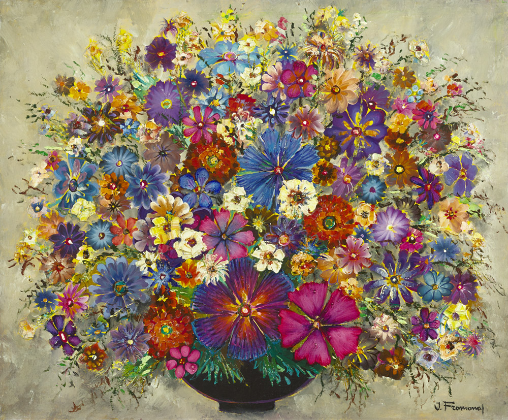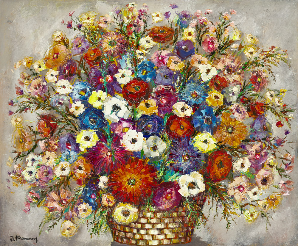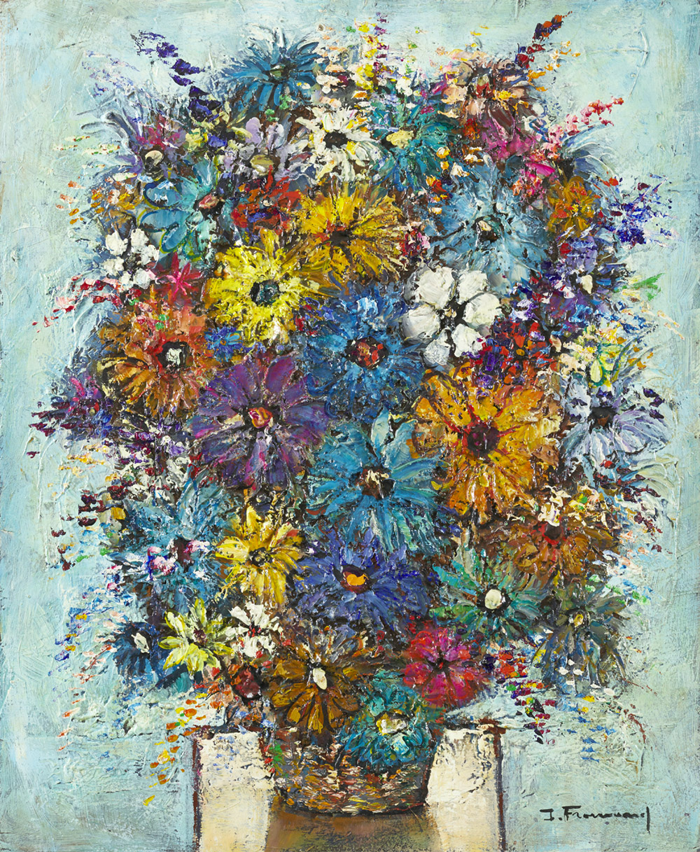 Serie "Flowers" - Ref : F42 Fleurs France / Flowers France ca. 1990 60c x 120 cm - 23,6 x 47,2 inches Oil on board