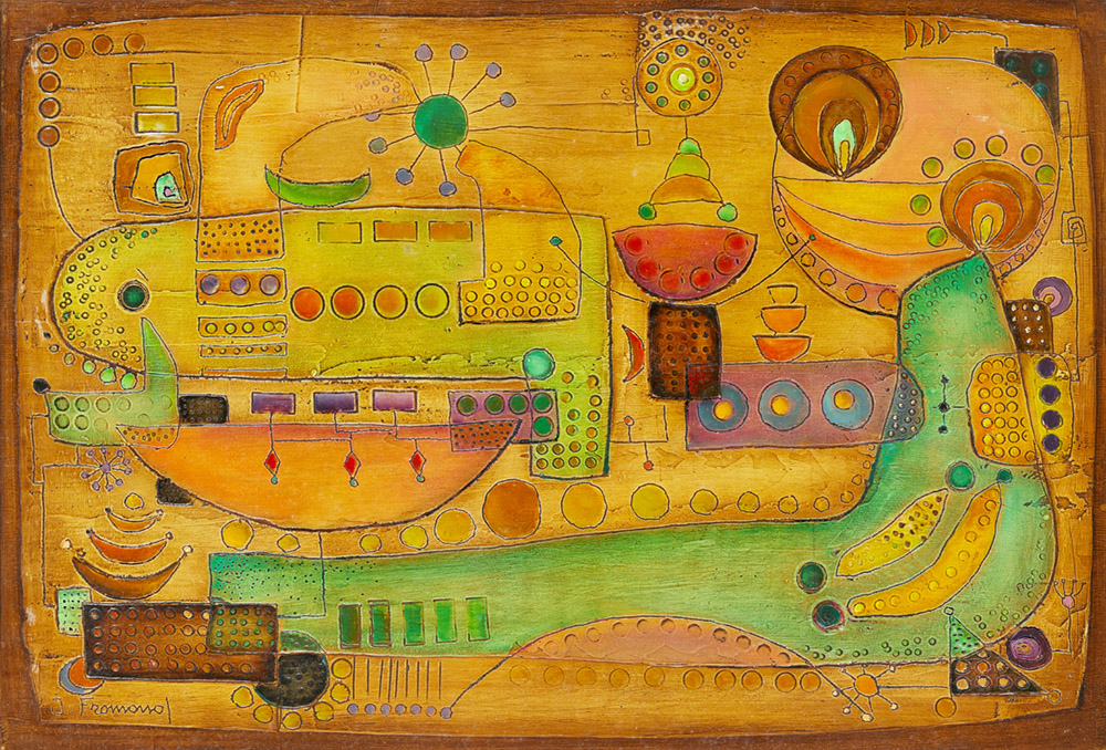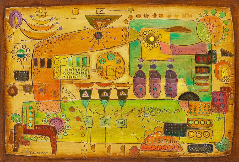 Serie "The Ark" - Ref : AN1 Arche de Noé / Noahs Ark ca. 1970 50 x 73 cm - 19,7 x 28,7 inches Oil on board